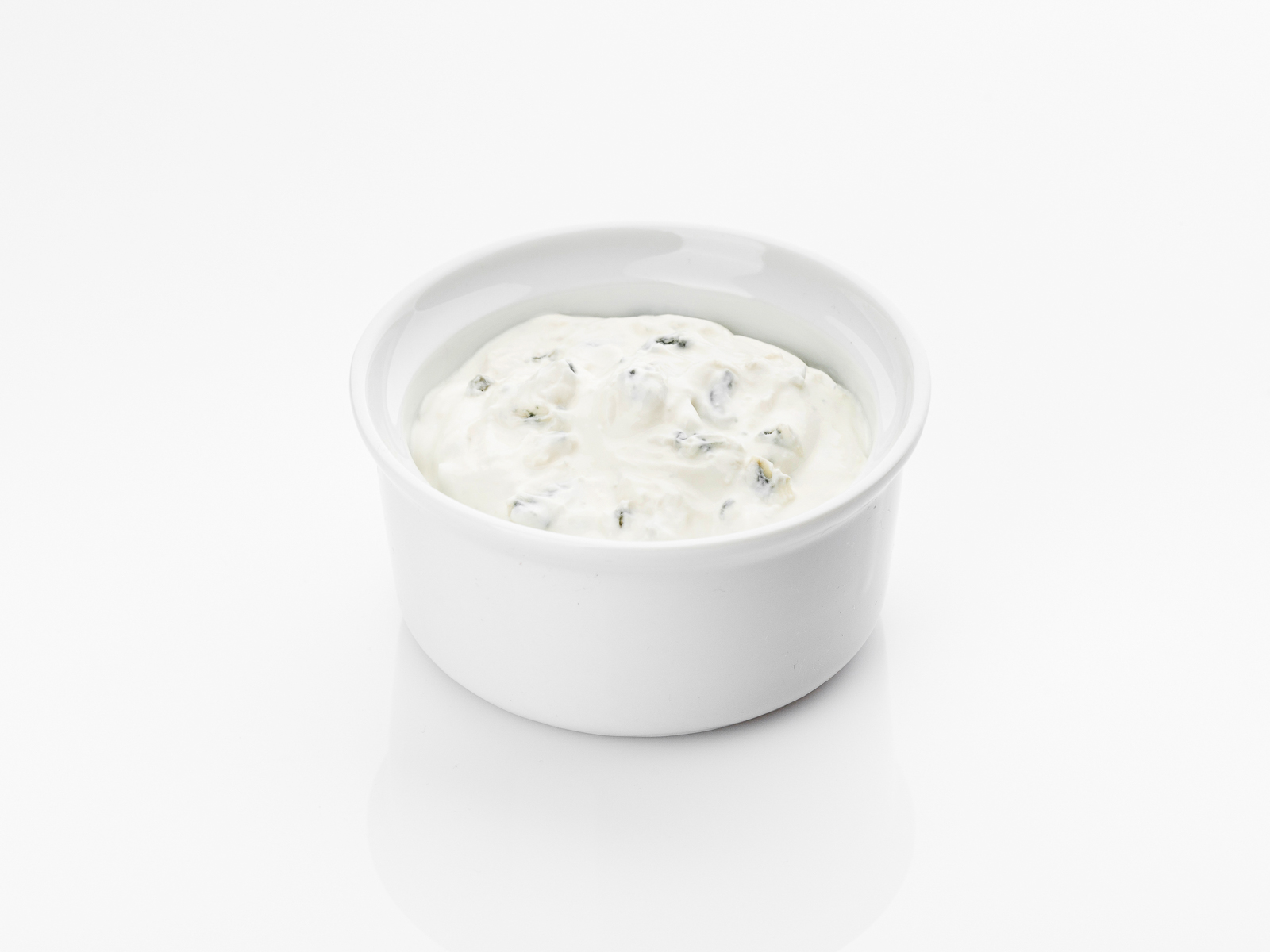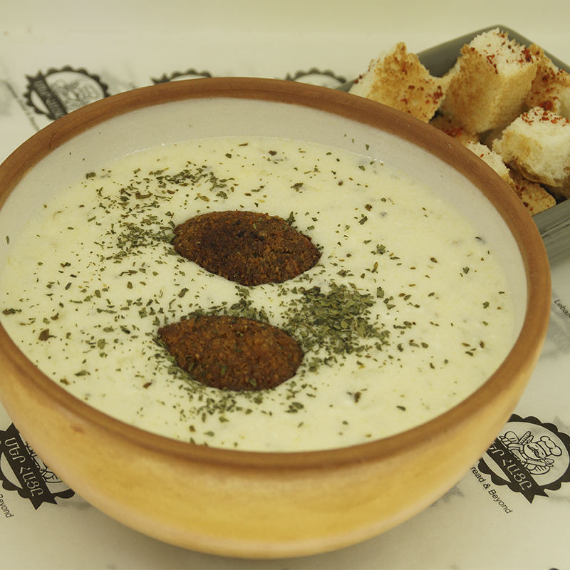 խմոր, քամած մածուն, լոլիկ, վարունգ, թարմ անանուխ, կտրատած զեյթուն